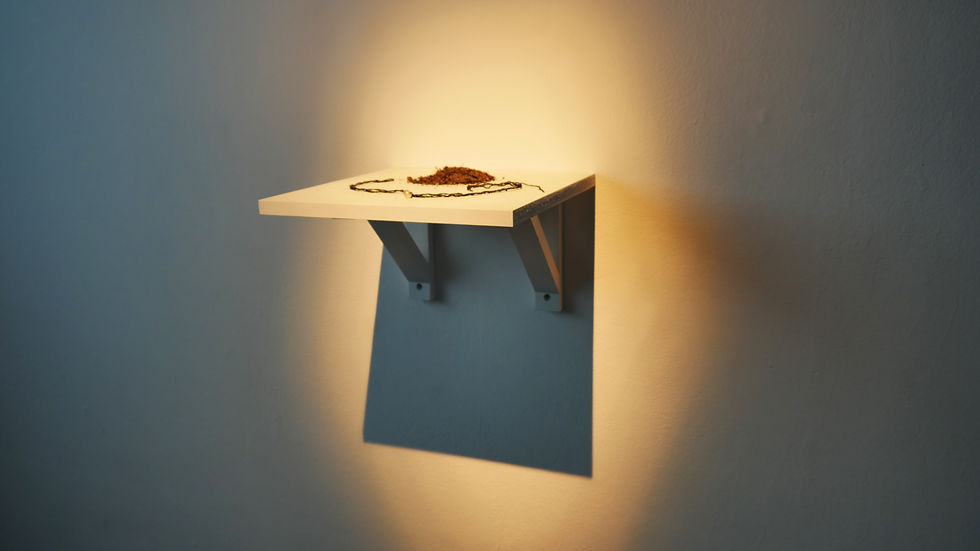 Sculptural elements are also featured, including a guidebook found in Australia from the early ‘80s recounting Abkhazia’s beauty before the destruction by the war, various media collected from markets in Sokhumi, and some soil collected in the gardens of Bakuradze’s former home in Sokhumi, now occupied by an Abkhaz family who took possession of it when he and his family were driven out. This soil, on being gifted to Bakuradze on the artist’s return to Georgia, was then distributed amongst his community of friends exiled from Sokhumi, who then fashioned a series of necklaces containing trace amounts of it, as a kind of energetic and spiritual connection to their homeland in exile. One such necklace, also gifted to the artist, is featured.